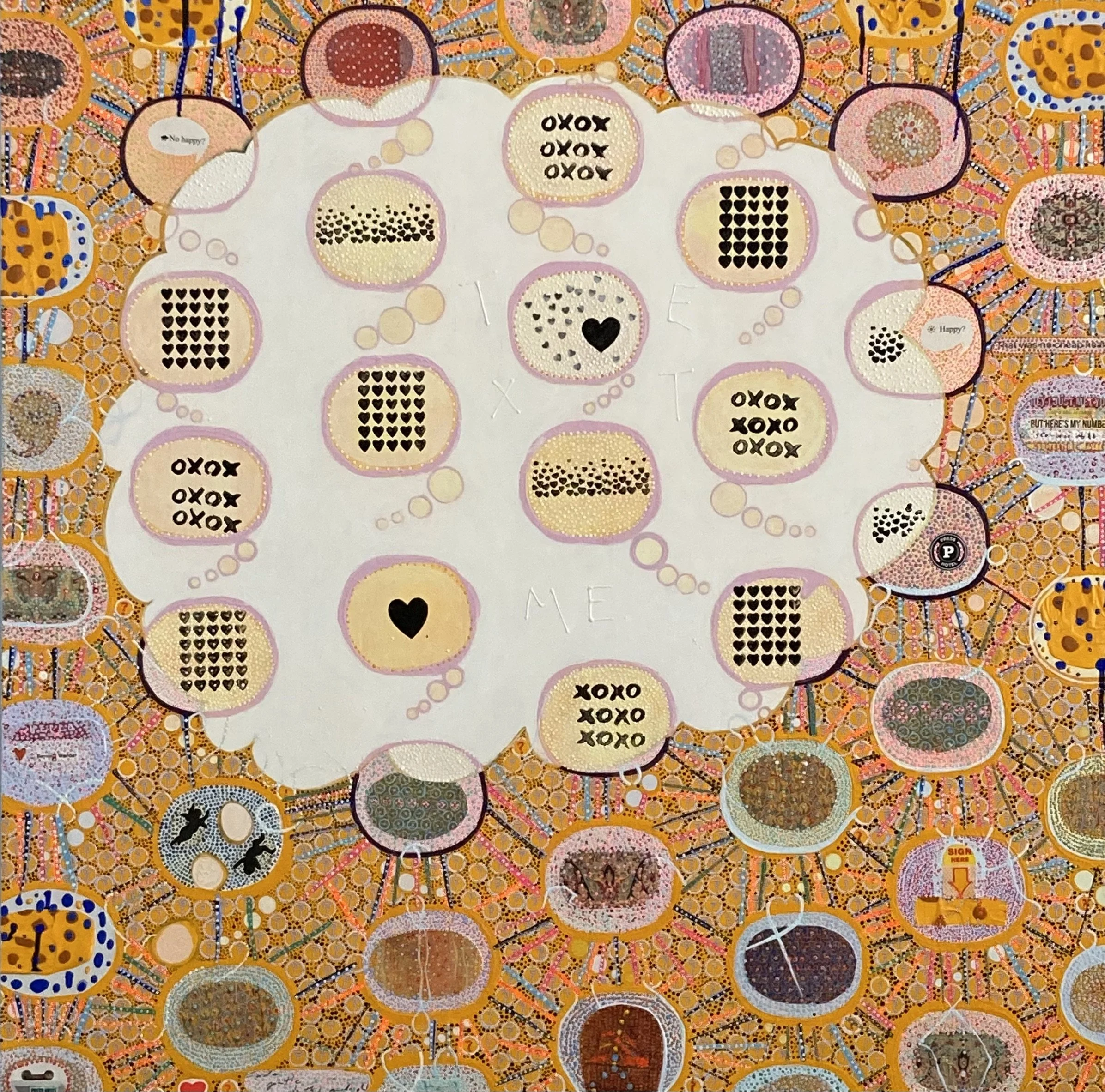 Heady Texting, 2024, Mixed media on panel, 34 x 34 inches