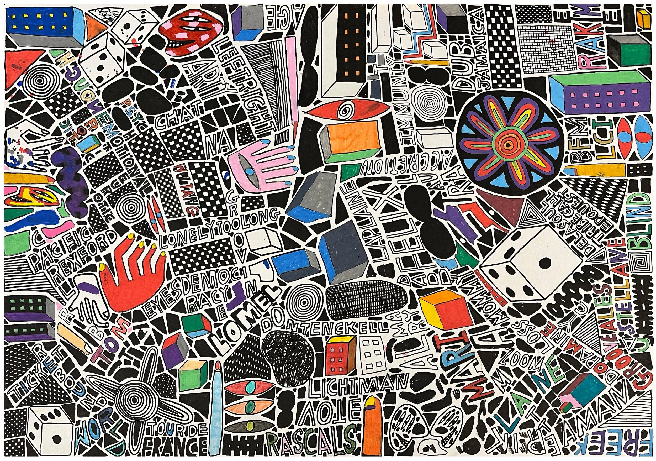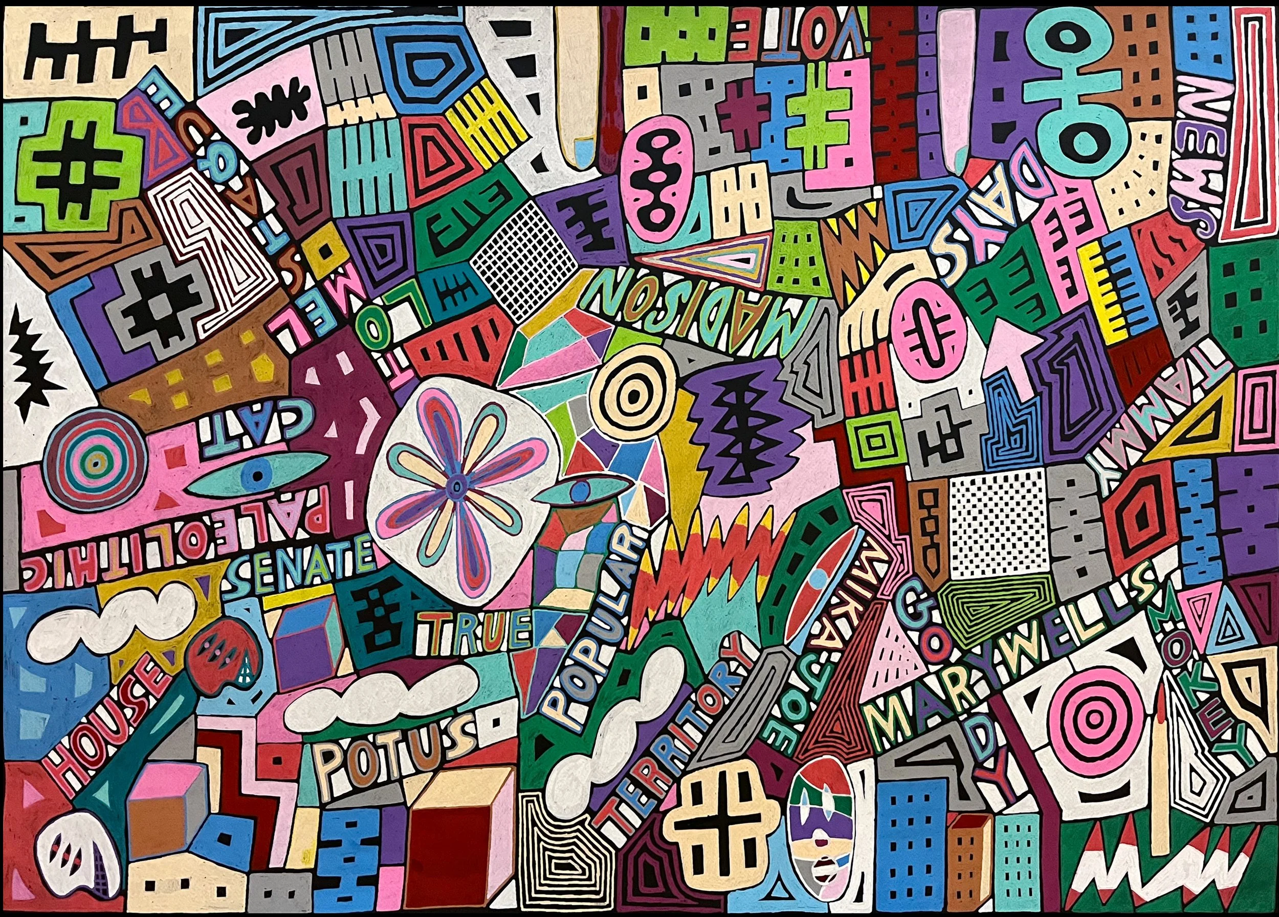 Popular, Posca on paper, 30 x 42 inches
