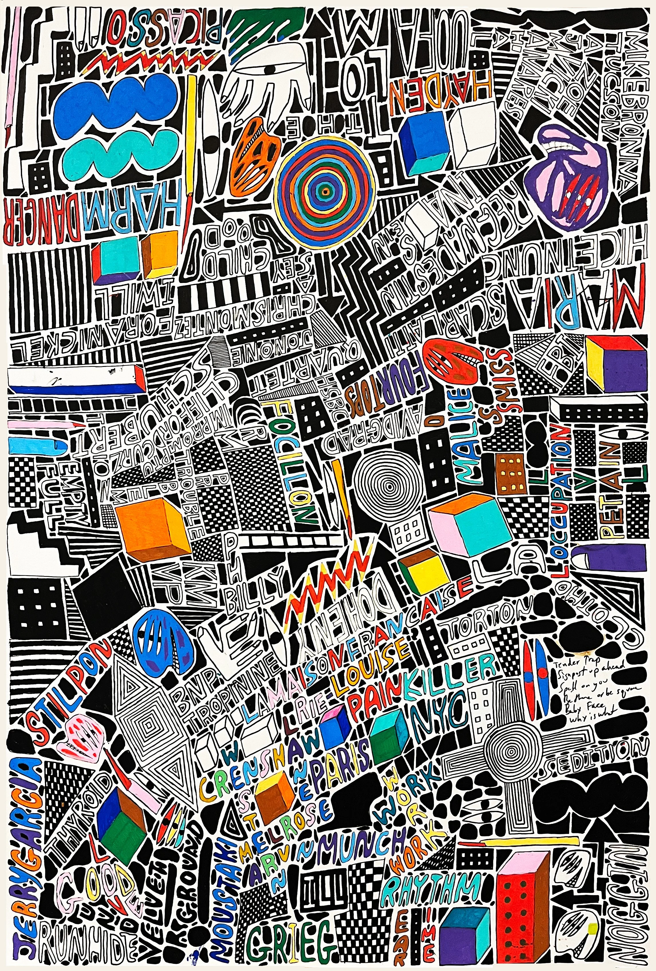 Love Potion Number 9, Posca on paper, 30 x 42 inches
