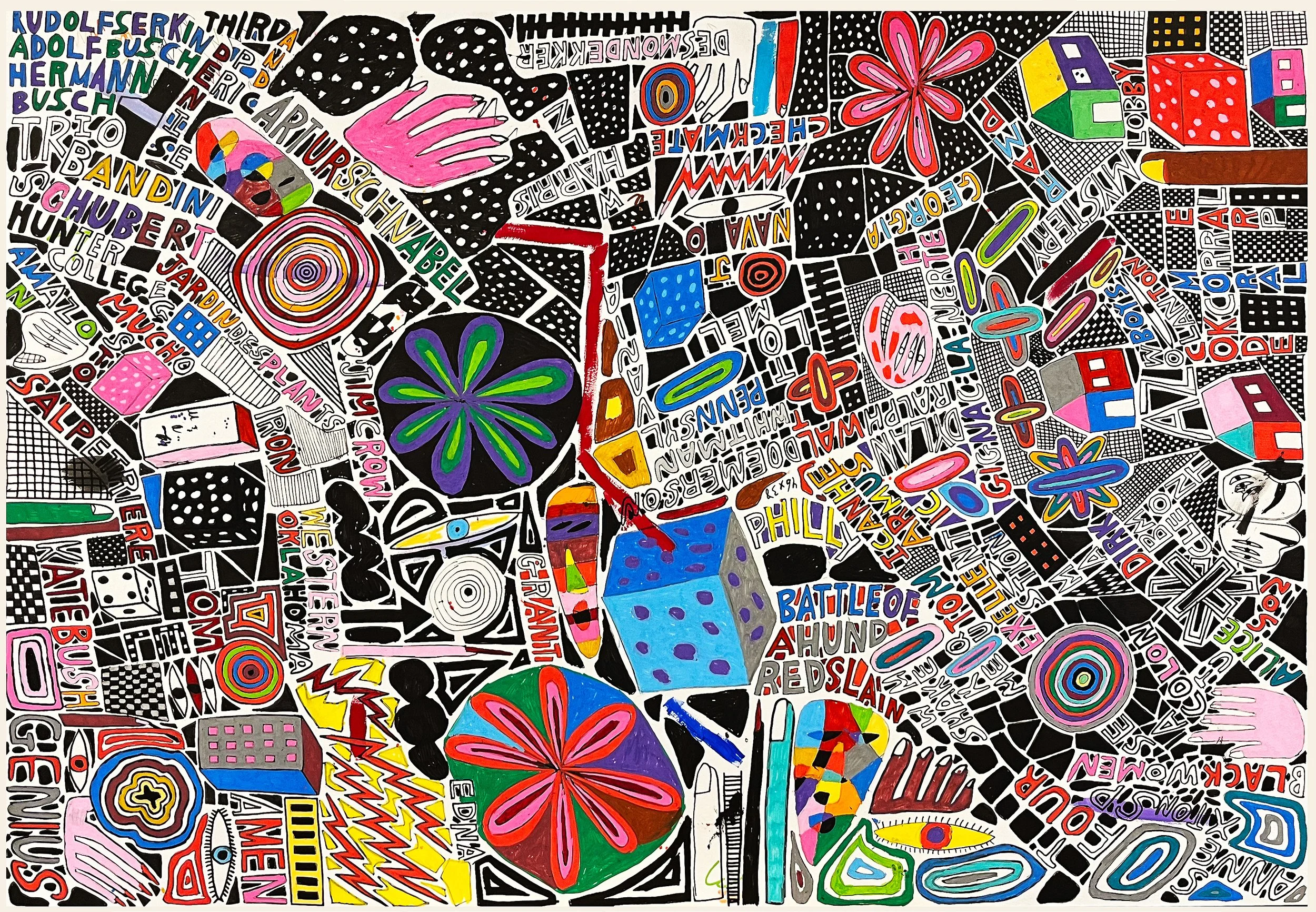 Battle of a Hundred Slain, Posca and acrylic on paper, 30 x 42 inches
