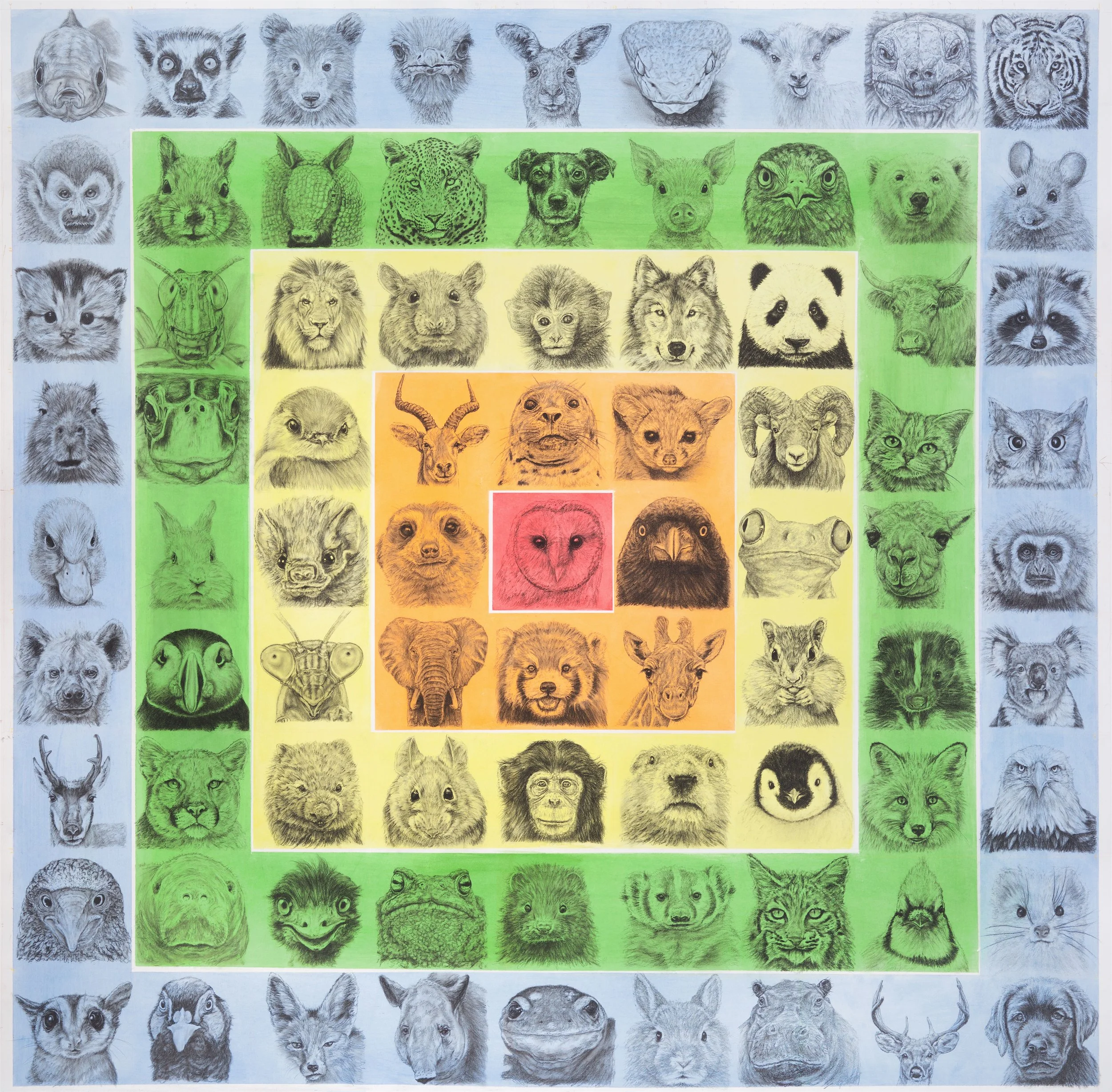Phil Knoll, Poly Nation, 2024, Watercolor and graphite on paper, 44 x 44 inches