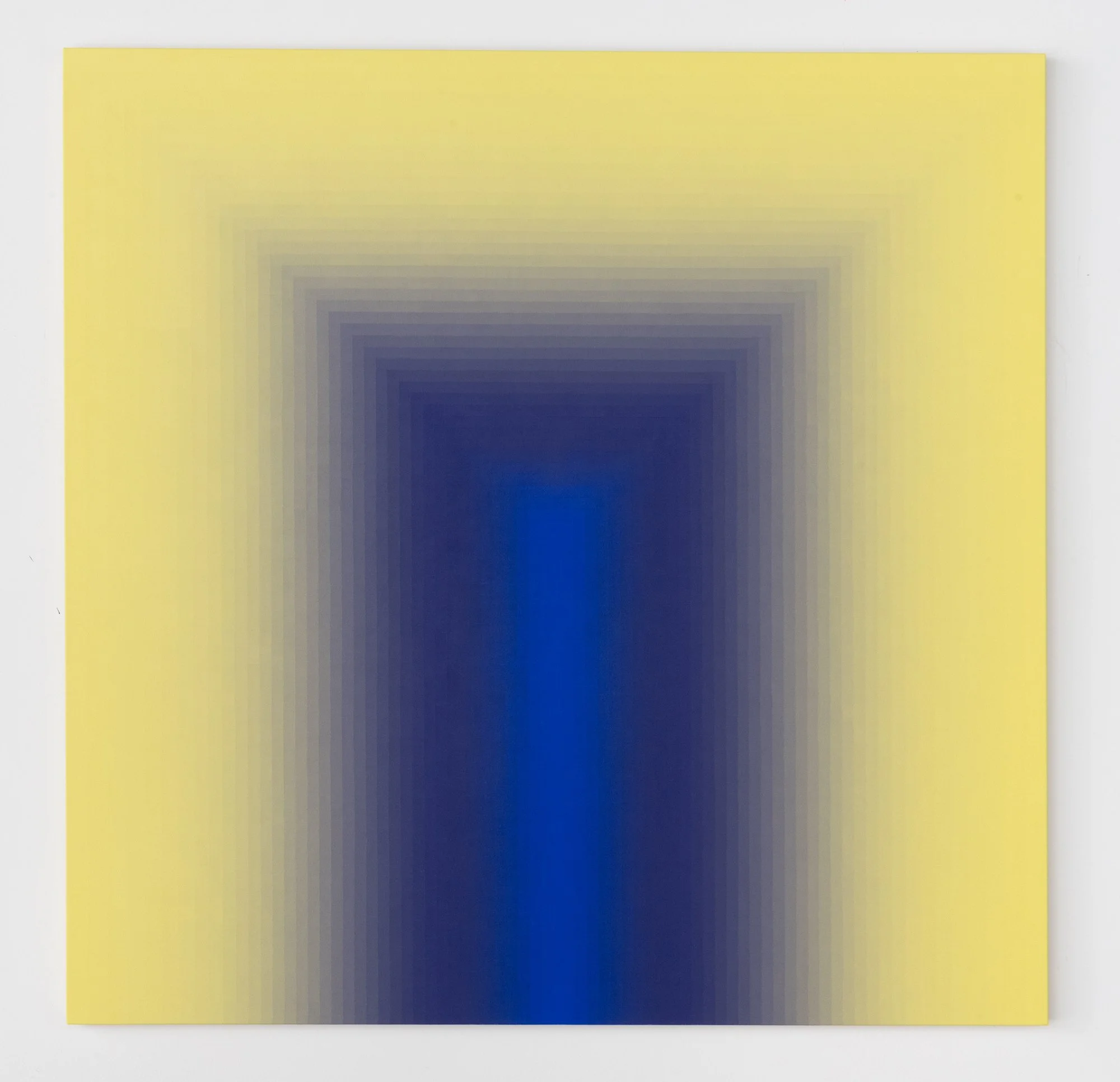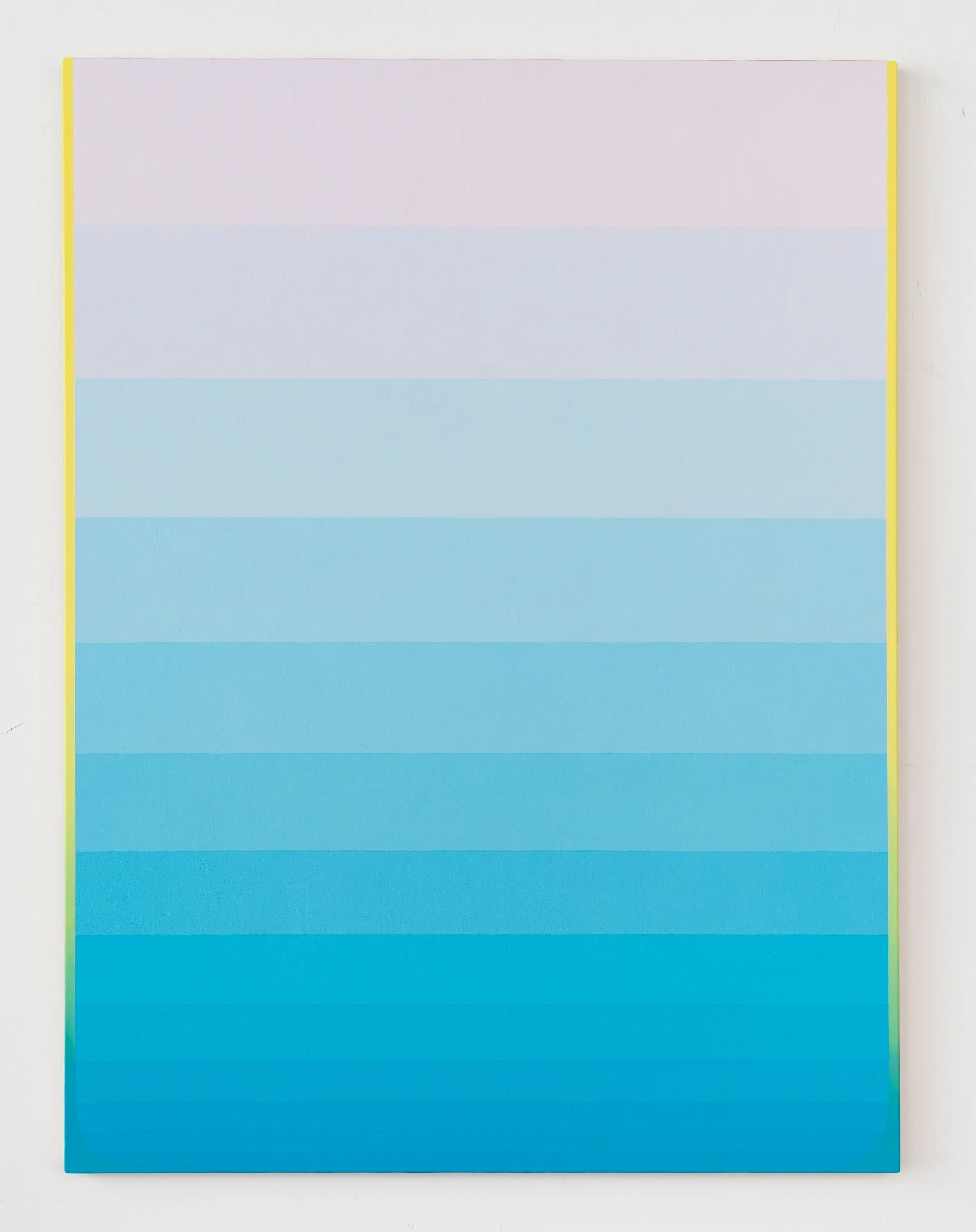 Audrey Stone is an abstract painter. She described her work in a unique way. “I have been occupied with line and color for some time; subtle color gradients have recently become a prominent element in my work. Observing shifting color and light in nature is an ecstatic experience for me. I find myself experiencing simultaneous excitement and calm, producing a desire to bring this dynamic opposition into my work. In my current paintings, I use the boundaries between broad and narrow bands of adjacent colors to generate visual vibrations. I am intrigued by the way the eye and brain process these transitions between colors, informing the viewer’s emotional and physical response to the work”.