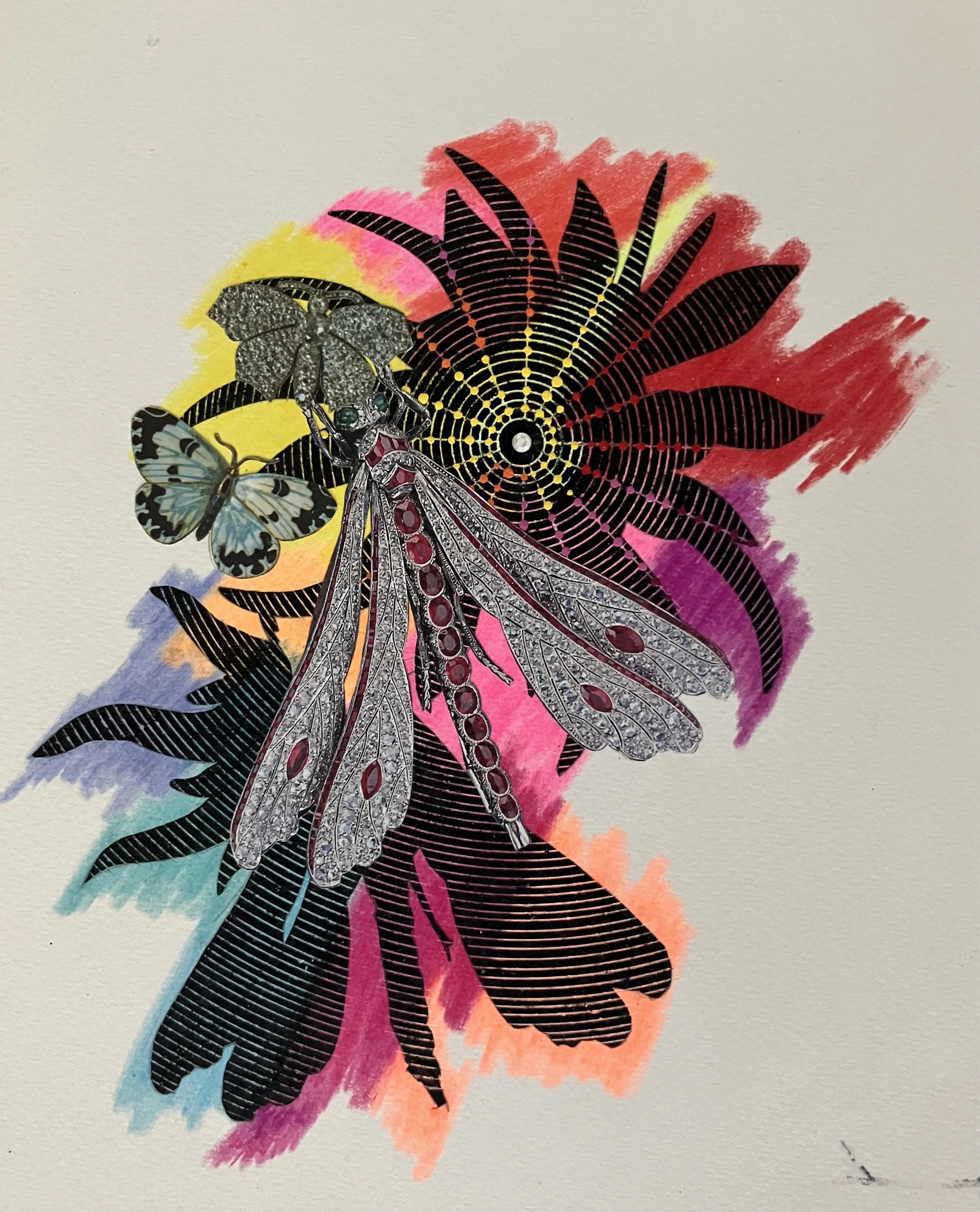 Dragonfly and Butterfly Jewel, 2010, Acrylic, Collage, Crayon and Ink on Arches Paper, 10 x 8 inches