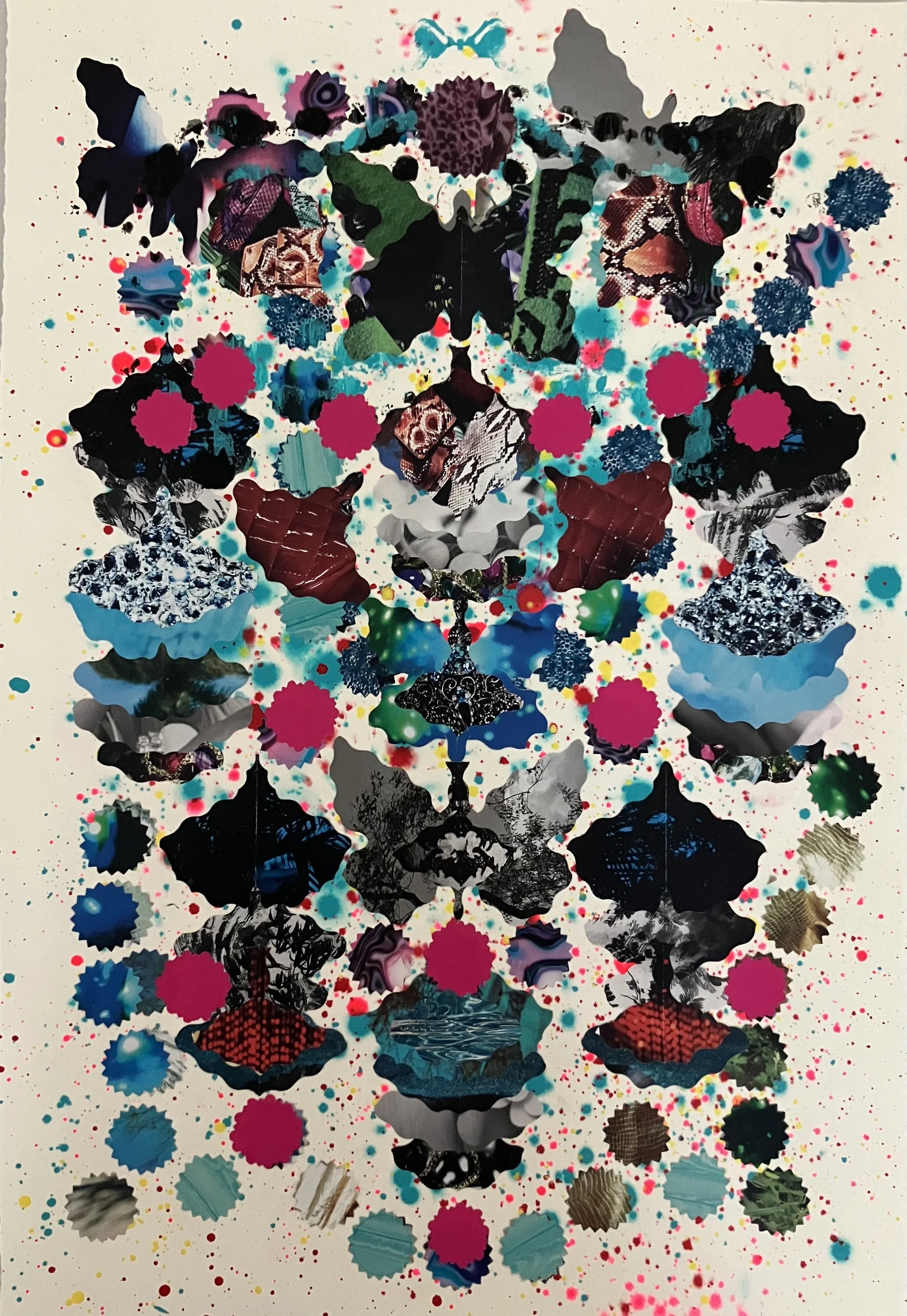 Butterfly Bowl, 2018, Acrylic, Collage, Gems on Arches Paper, 15 x 11 inches