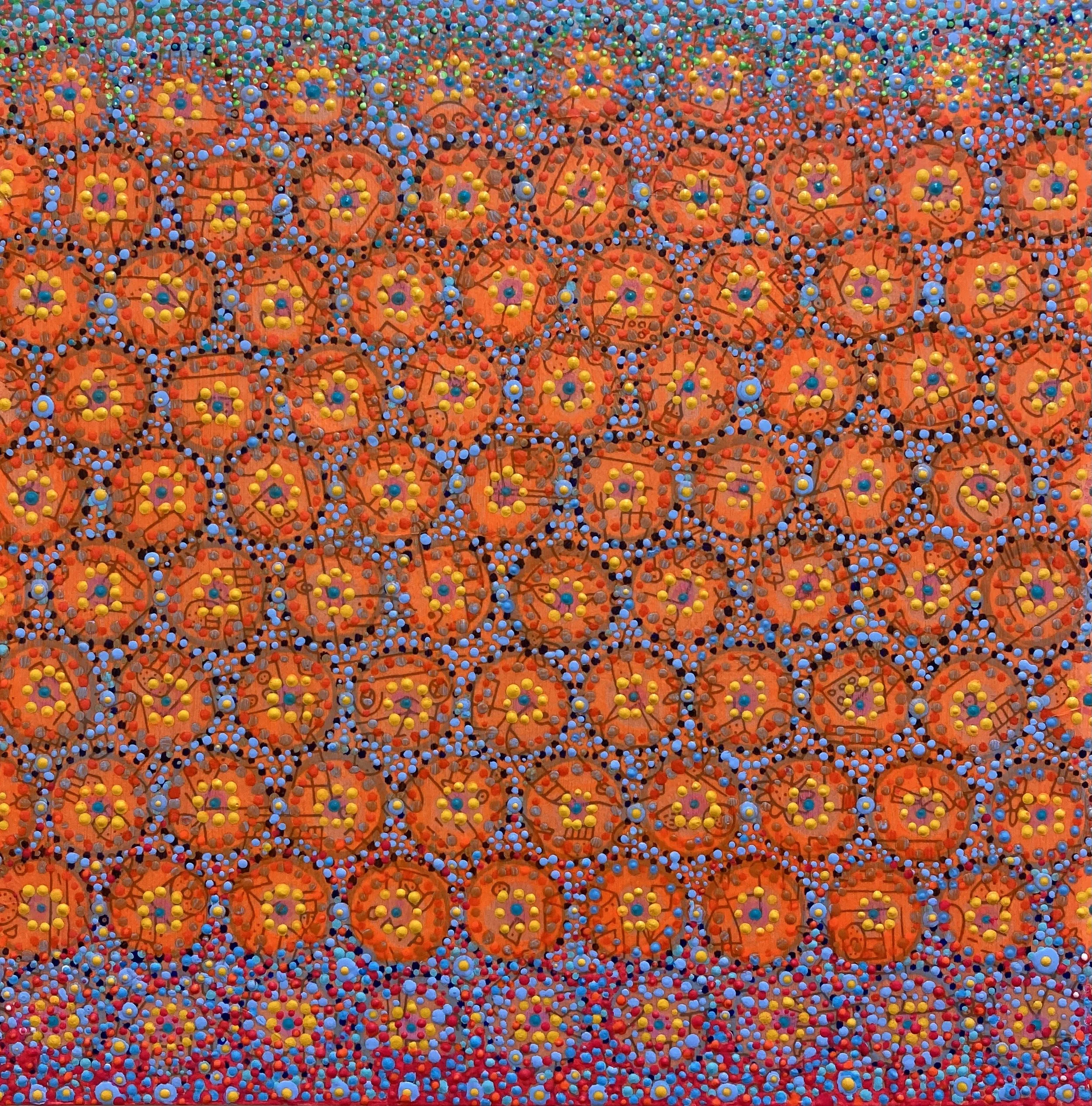 Heady Texting, 2024, Mixed media on panel, 34 x 34 inches