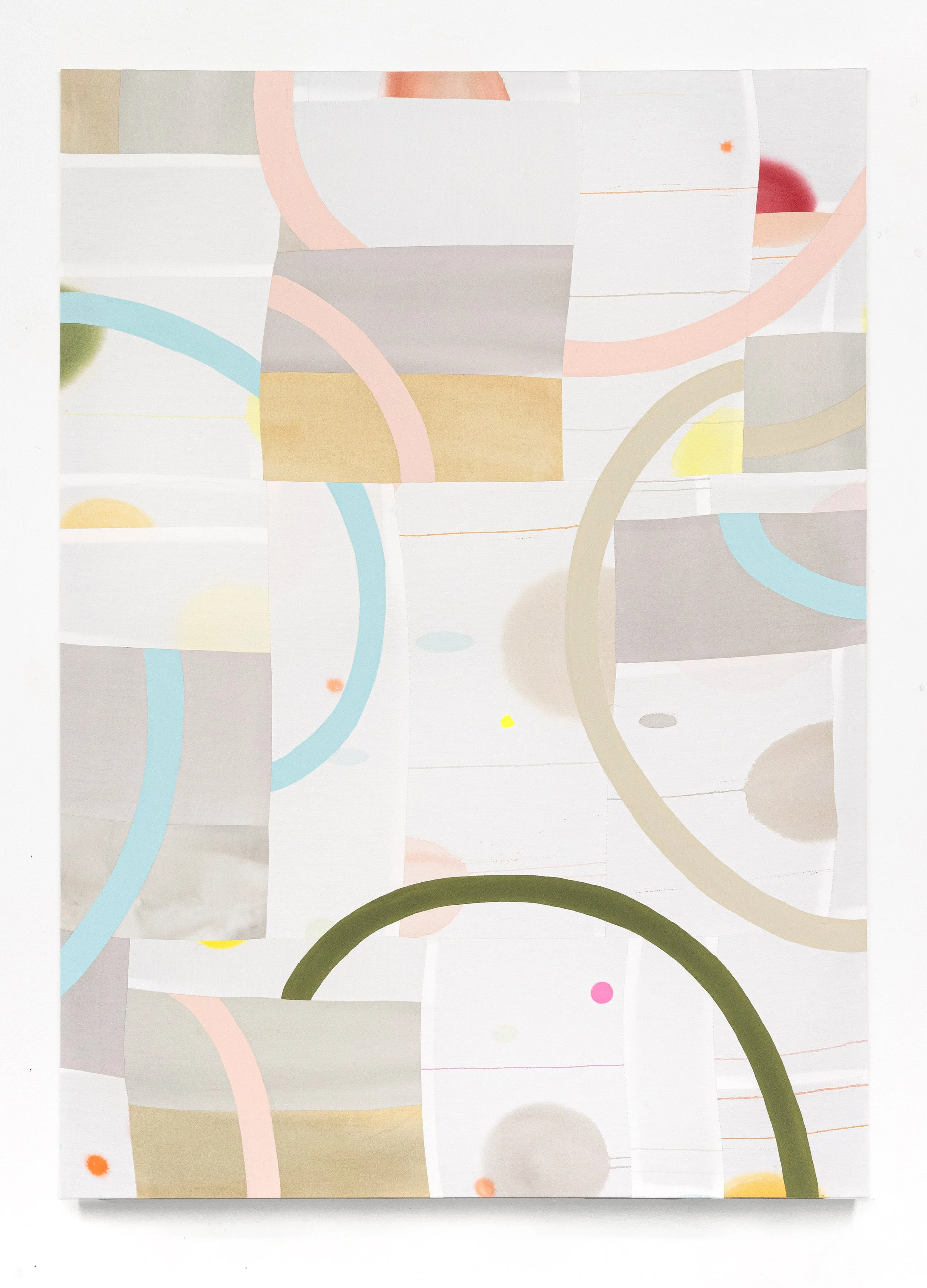 Loop de Loop, 2025, Acrylic ink and paint on pieced and sewn muslin, 42 x 30 inches