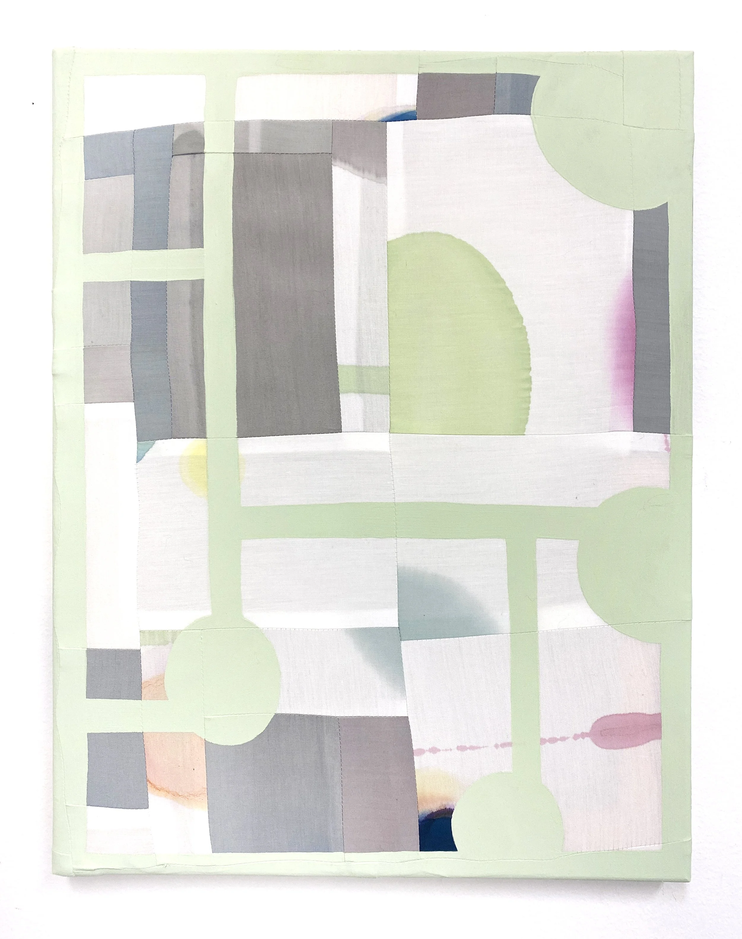 I am interested in developing a surface that’s full of the suggestive qualities that abstraction can create. The stitched paintings supply this through the deliberate recalibration of shapes and their relationships to one another. In parallel to these, and often in service to them, collage becomes an important method for revealing new, unexpected interpretations of form. The sources of the collaged materials are often photographs of real things and places that hold meaning for me. As in the paintings, that information is disrupted and reinterpreted in compositions that suggest the fleeting nature of forces, figures and time.