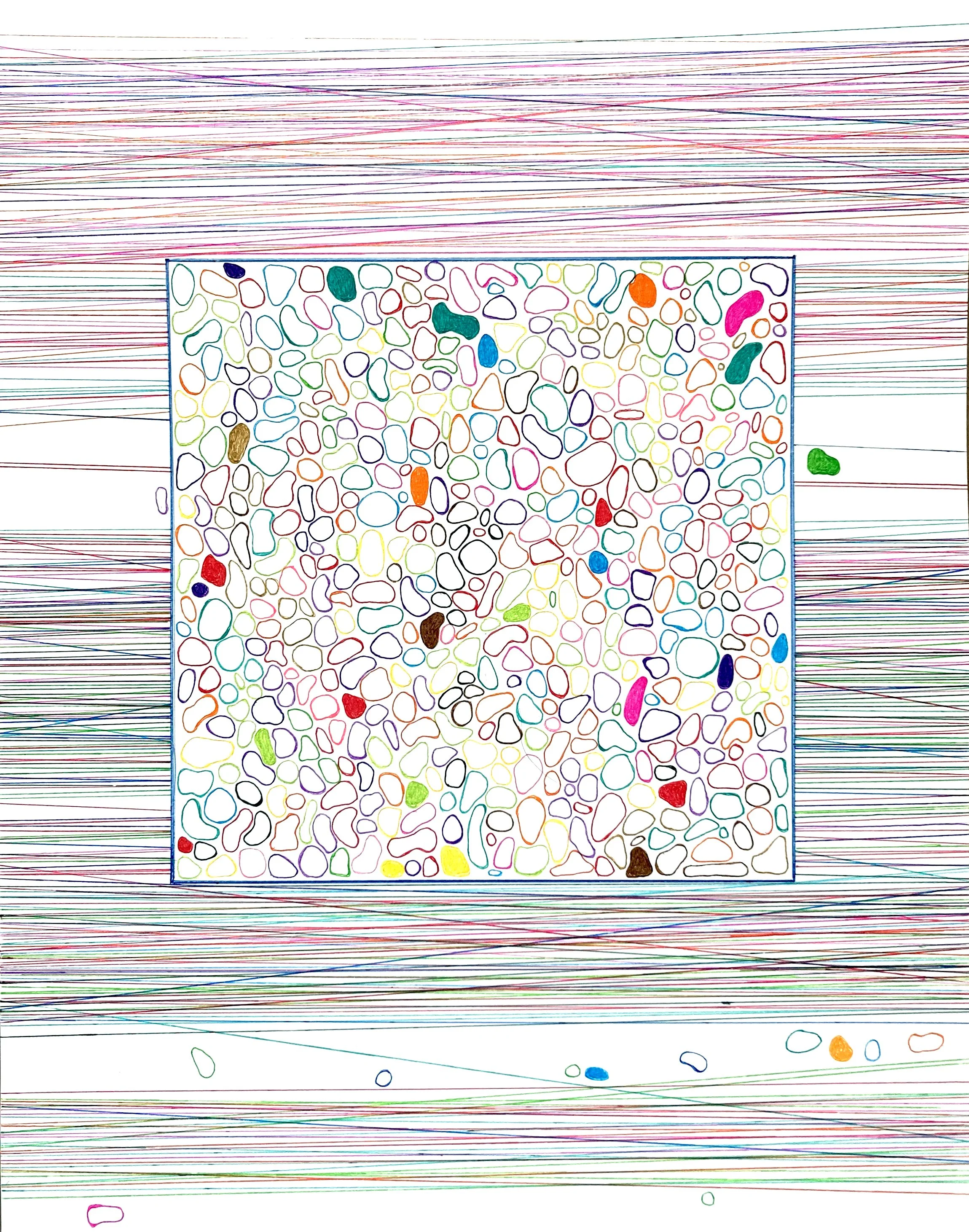 By employing repetition, overlays and transparencies the artist pushes viewers to look more closely and to be an active part of the experience of viewing. Each piece has no beginning or end similar to the way the sky or the ocean has no starting or ending point.