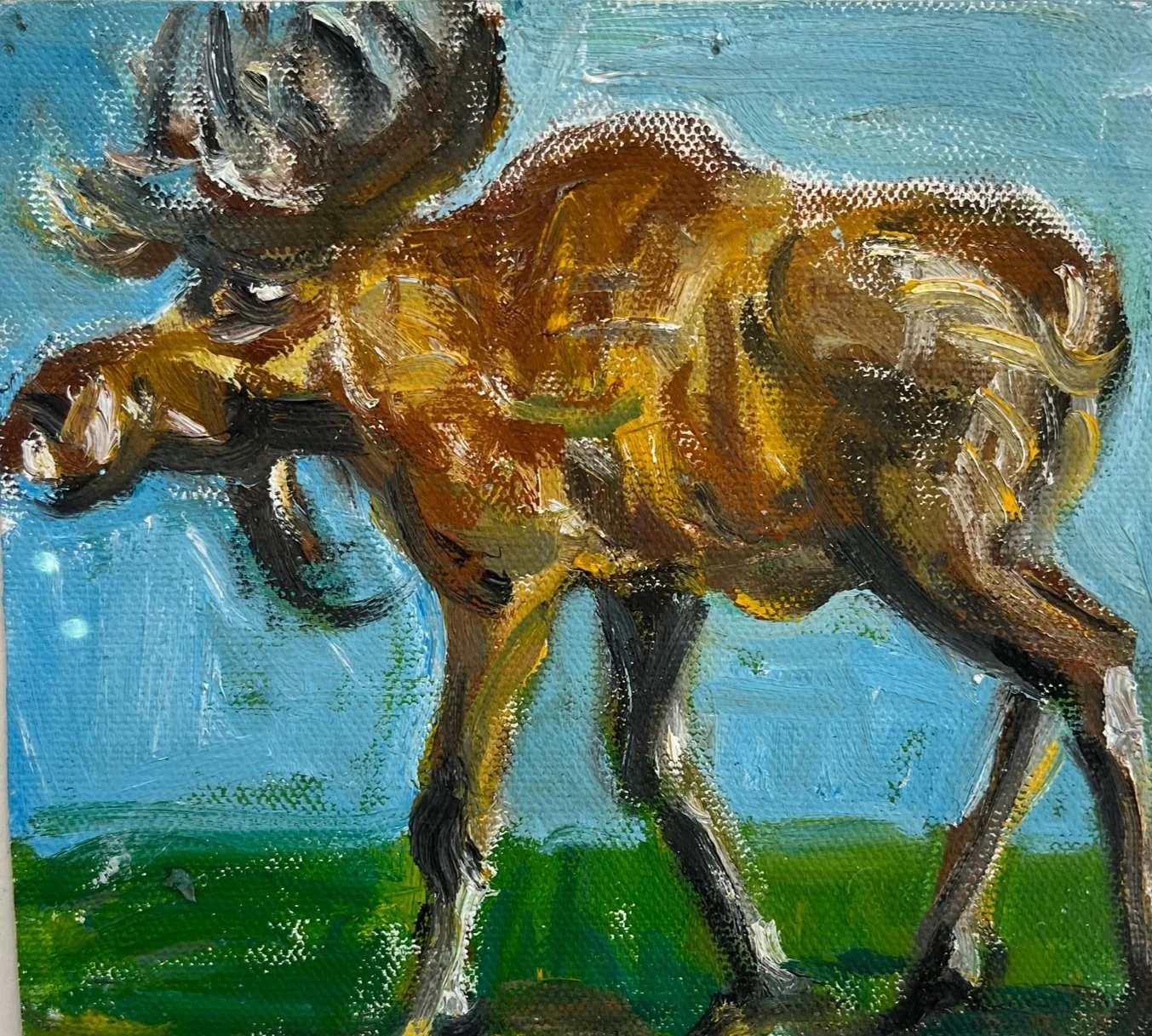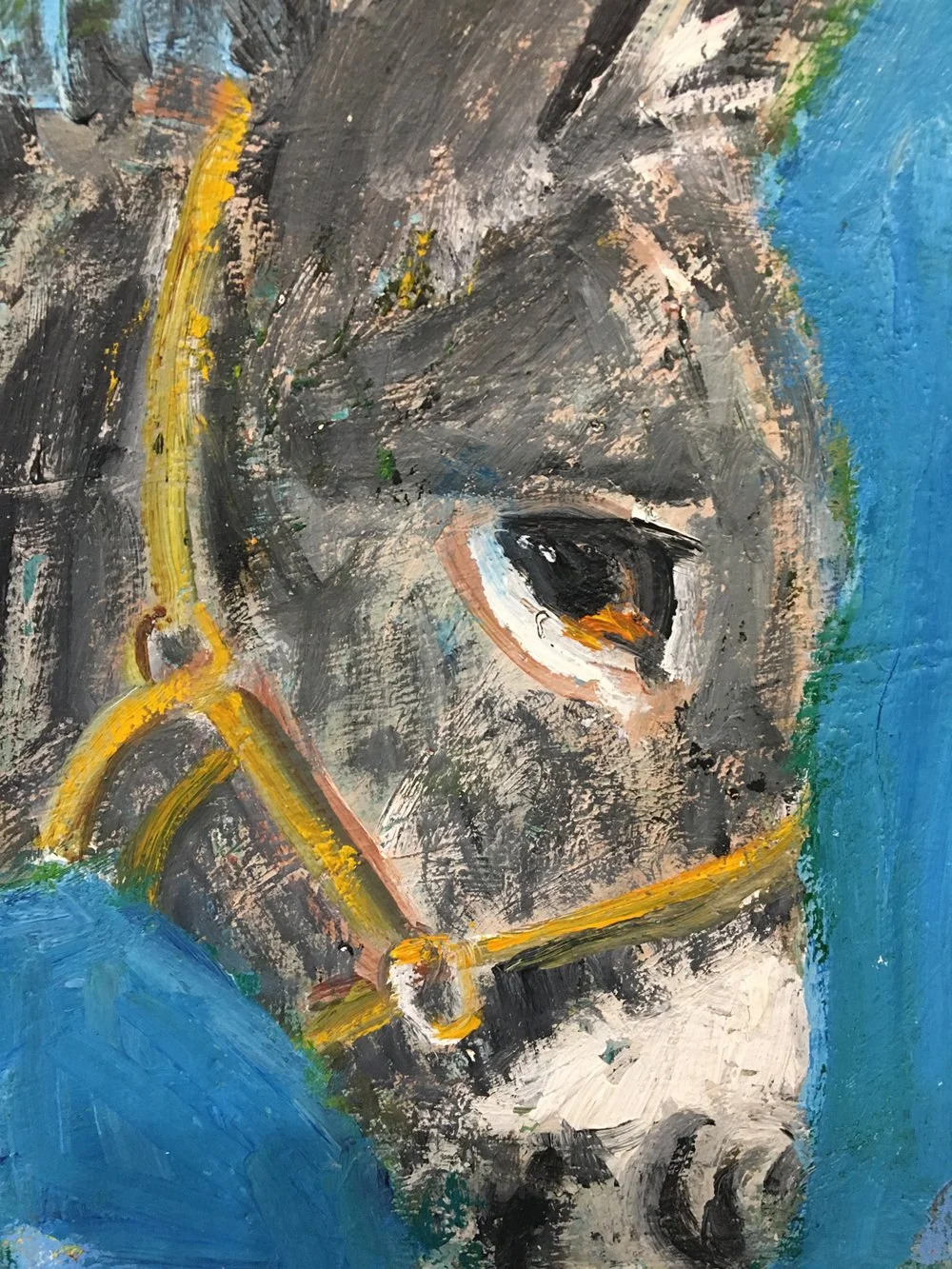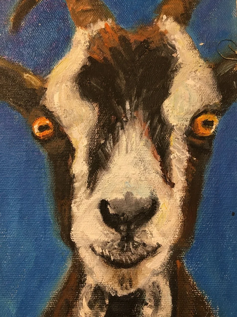 Huguette Martel’s work entitled “Animals I have known, and some I haven’t” is a series of petit oil paintings accompanied with short essays about the artist’s life. Through the animals Martel gives us a glimpse of her life; “Cows” and “Goats” depict her childhood in France, and the “Dogs” tell of her summers in Vermont later in life. “Donkeys” and “Blue Footed Boobies” are labeled as occasional meetings and fantastic creatures respectively. The paintings are exquisite, and the combination of story and paint make an extraordinary presentation.