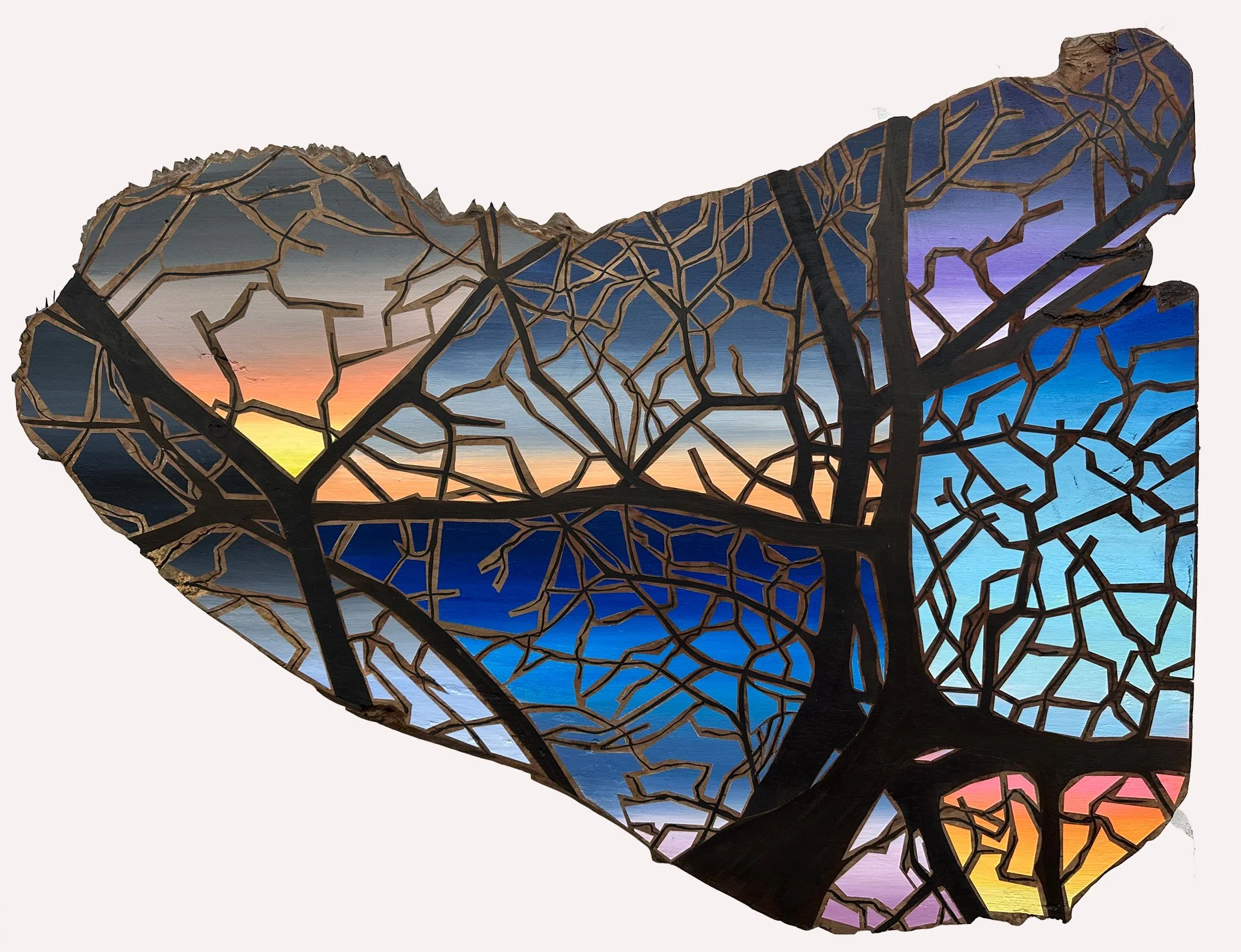 The Spaces Between Us, Acrylic on English Elm, 38 x 52 inches