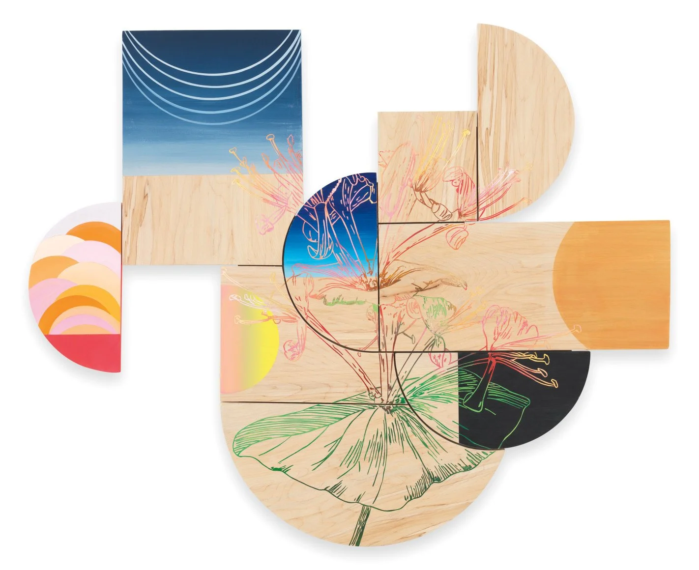 Honeysuckle All the Time, 2022, Acrylic on Maple, 31.25 x 38.75 x 2.25 inches