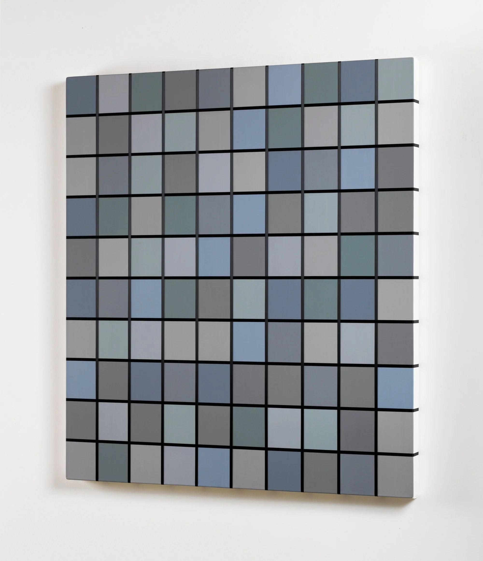 8 Grays I,, 2001, Satin ribbon and vinyl acrylic paint on canvas, 37 x 33 inches