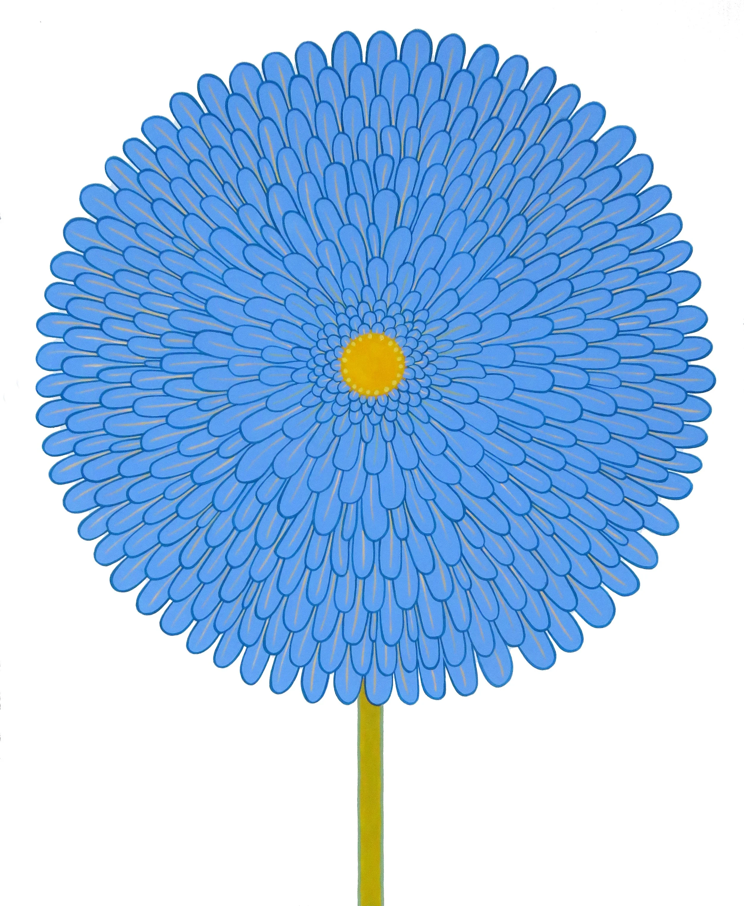 Smalt Blue Turquoise Zinnia, 2025, Acrylic on paper, 28 x 22 inches