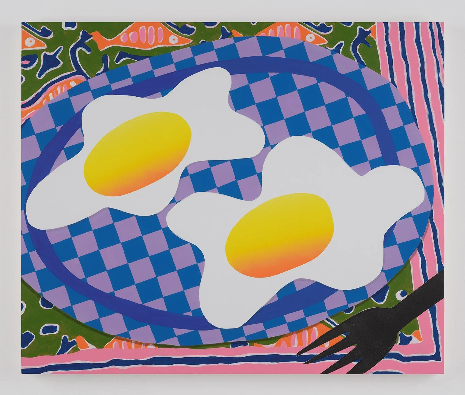 Eggs, 2023, Oil and acrylic on paper on panel, 20 x 24 inches