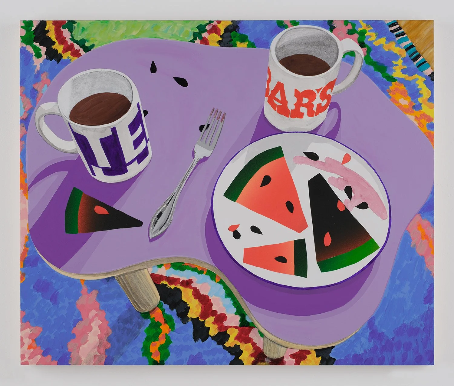 Morning Coffee, 2023, Oil and acrylic on paper on panel, 20 x 24 inches