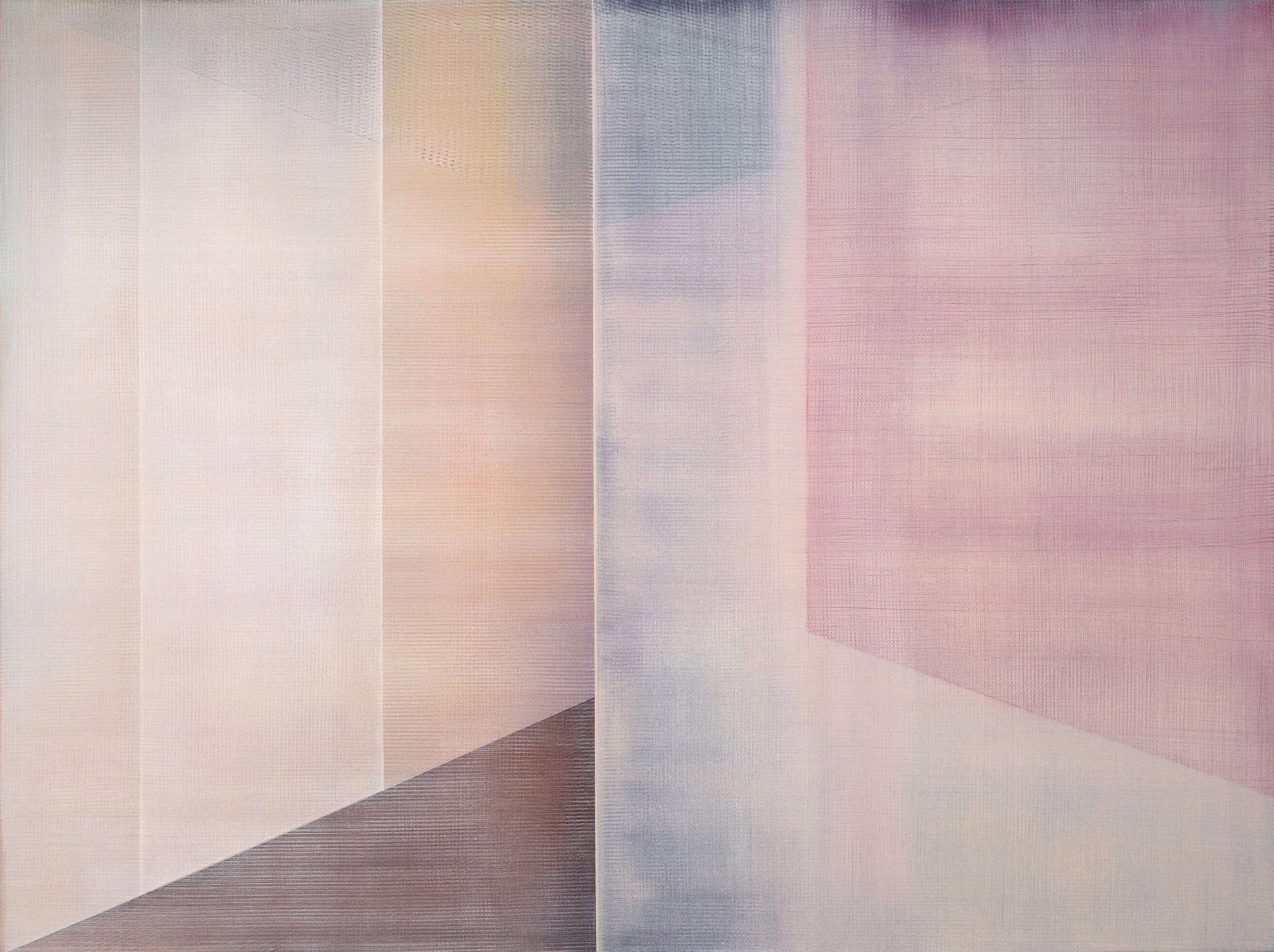 Karin Schaefer has an interdisciplinary practice that includes installation, painting, drawing and printmaking. Schaefer’s work challenges the binaries of long-established categories, abstraction/representation, conceptual/concrete, spiritual/material. She blurs the lines between hard-edged abstraction and an illusion of space, works to make the unseen visible, and integrates queer aesthetics and spirituality. Drawing inspiration from her meditation practice, decades of daily drawings are the source material for her paintings and drawings.