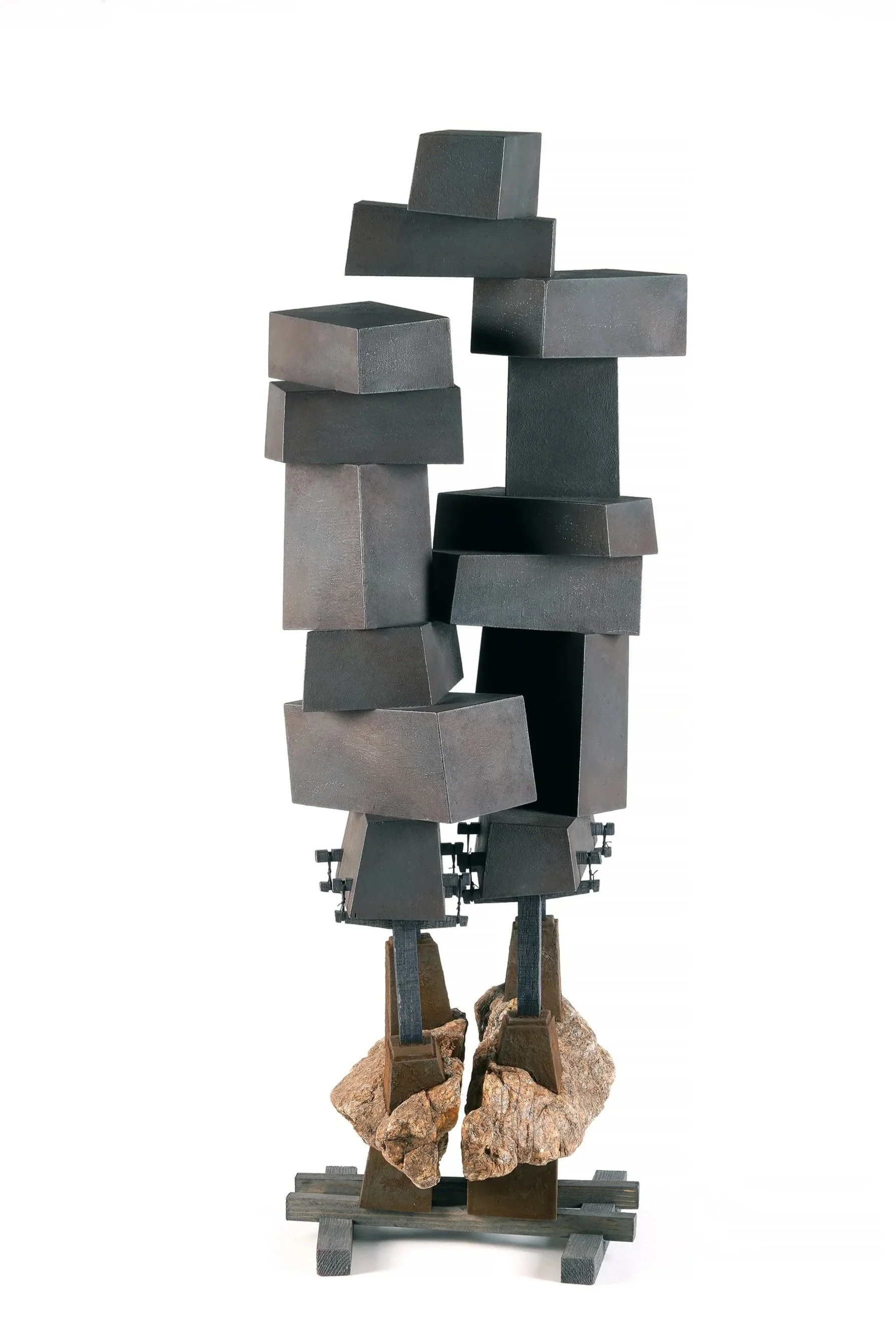 Environmental Structure No. 10, 2019, Wood, stone, pigment, hardware, 40 x 12 x 11 inches