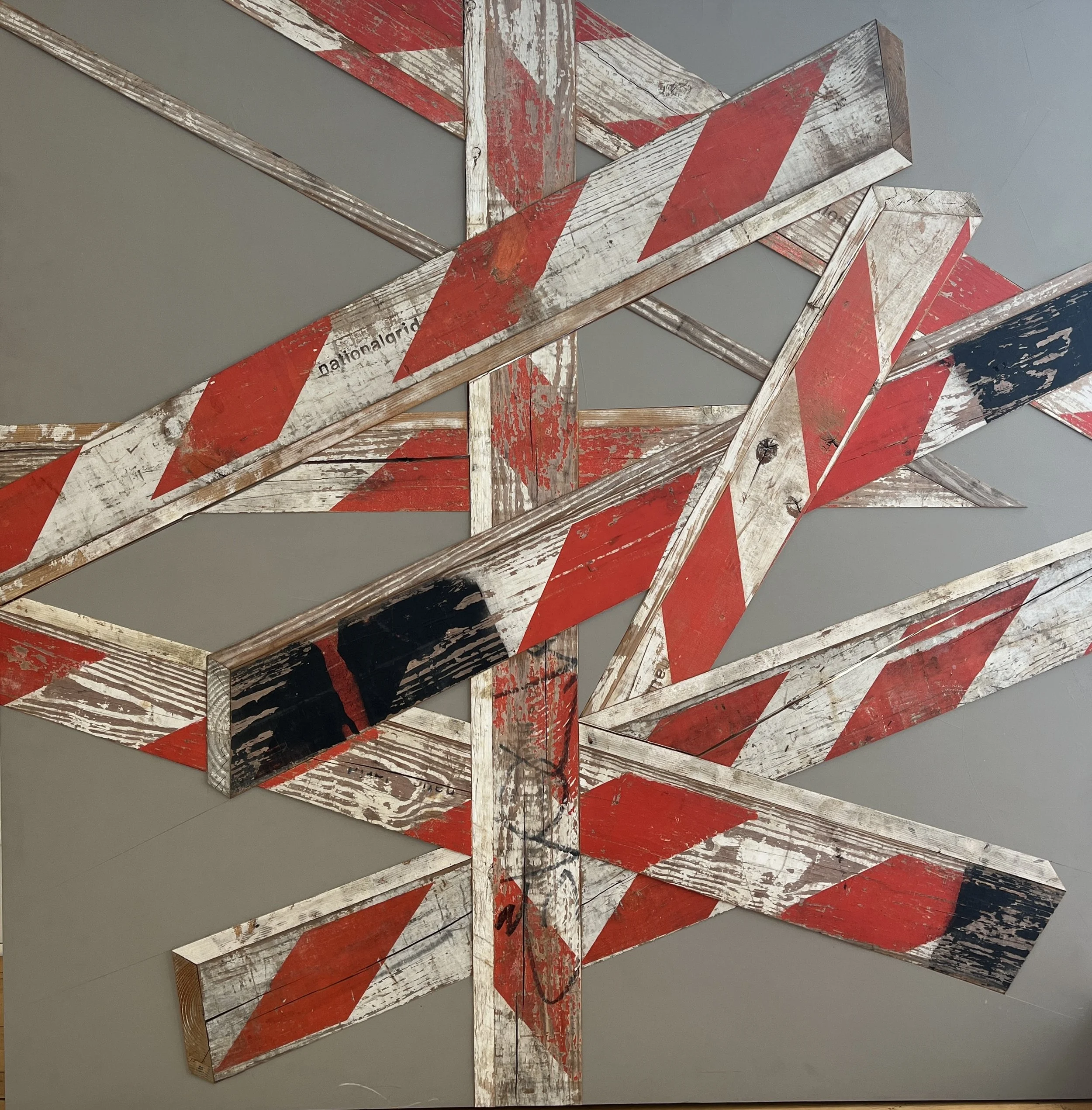 National Gridlock, Repurposed barricades and phenolic plywood, 66 x 66 inches