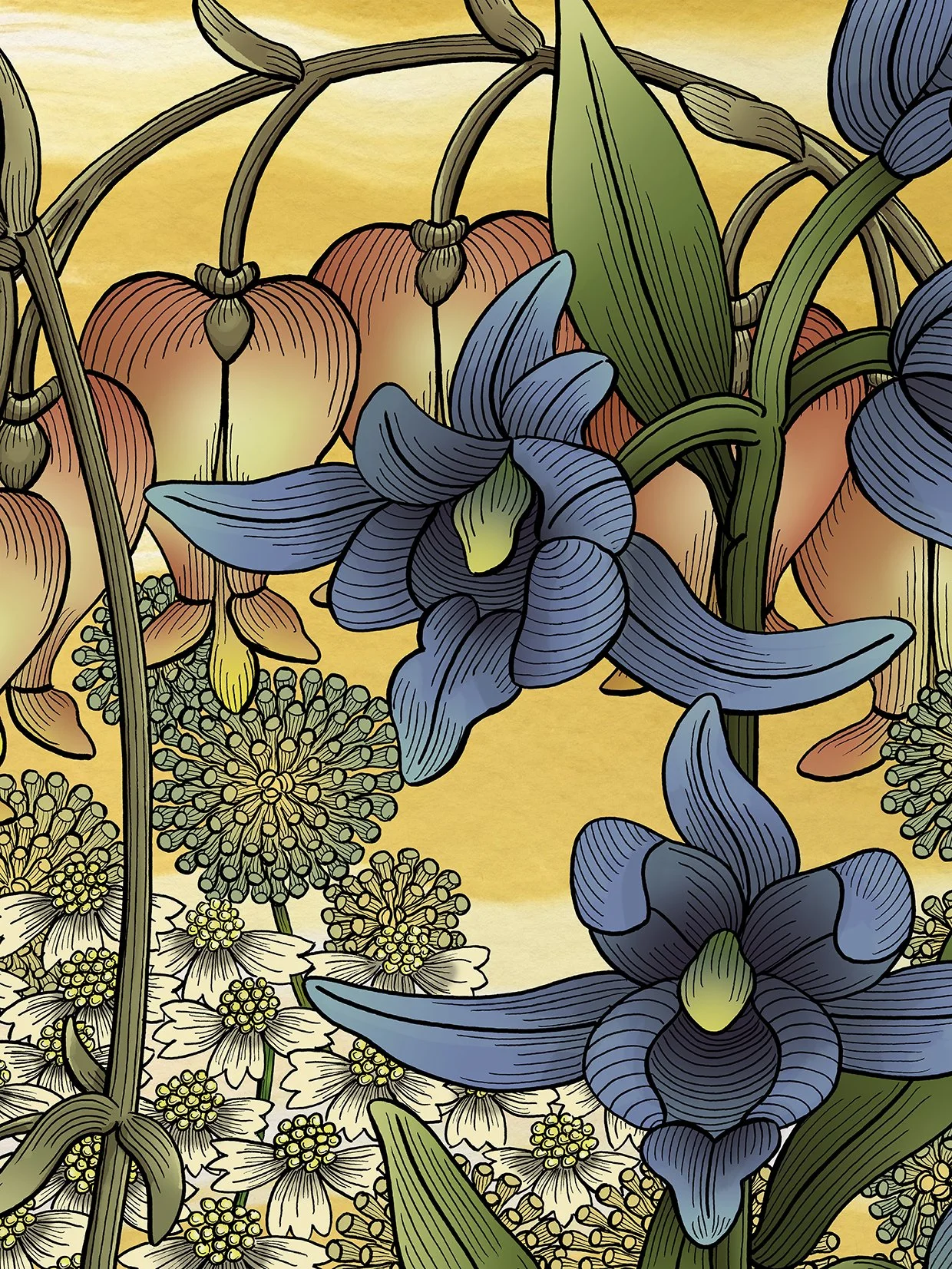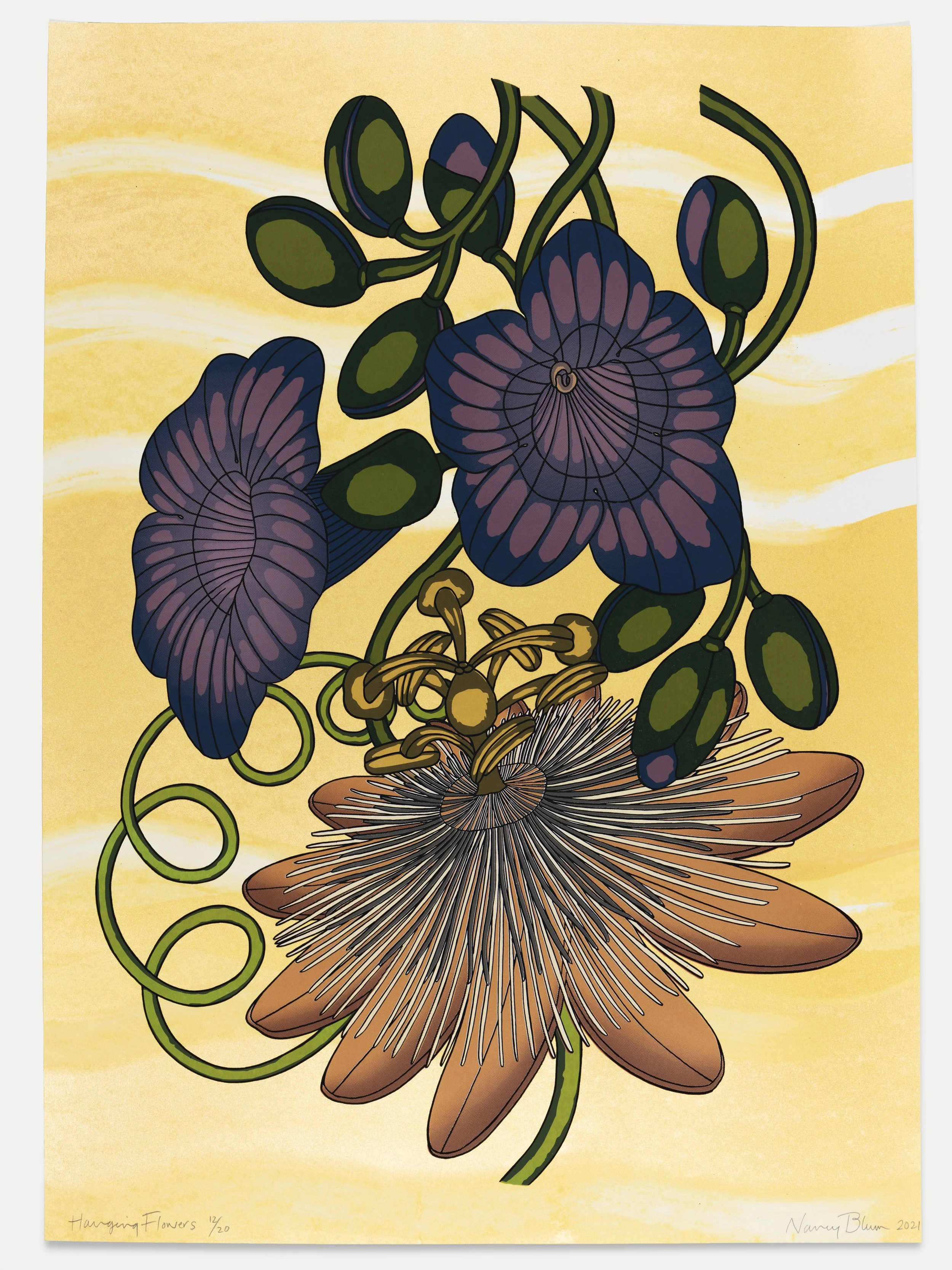 Hanging Flowers, Silkscreen with hand colored ink and gouache, 34 x 26 inches