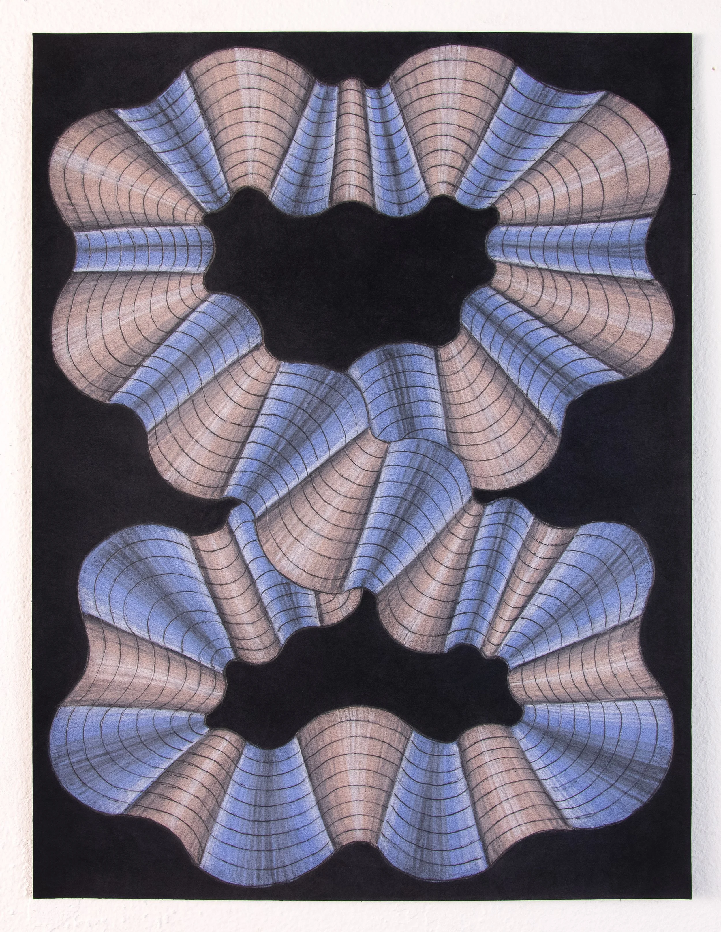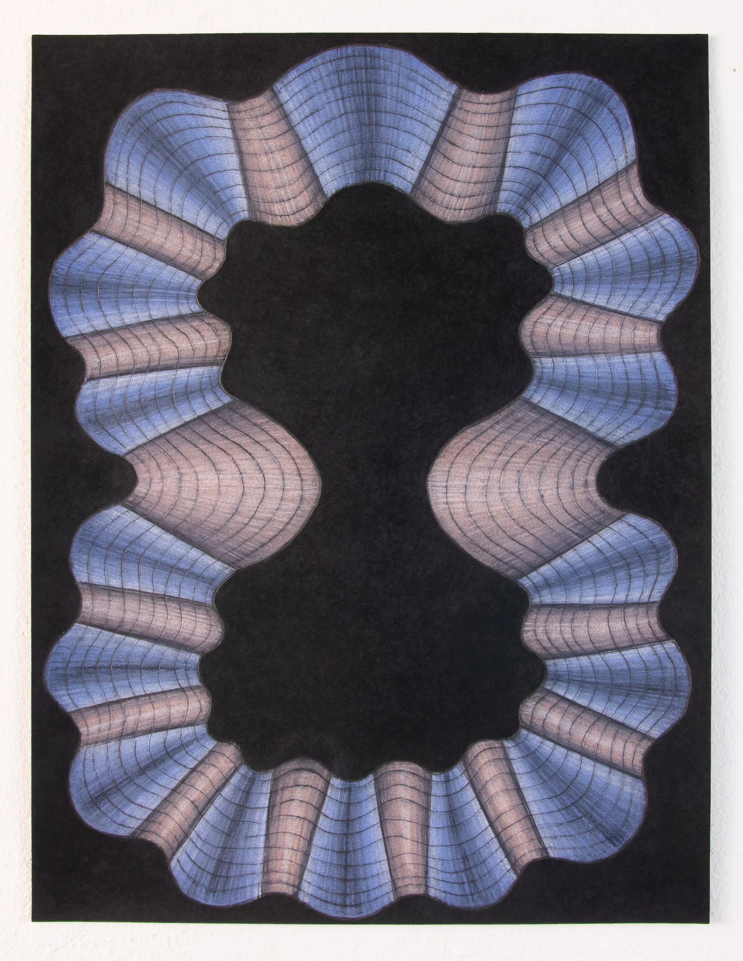 Blue and Pink Black Drawing 3, Colored pencil and graphite on paper, 9 x 12 inches