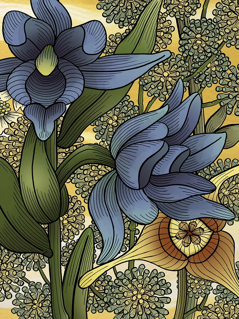 Blum describes her work in this way. “I use botanical motifs to create images that are universally associated with growth and continuity. My deeper intent is to conjure the ‘flower’ as an active, forceful agent, subverting a culturally conditioned point of view that often deems the ephemeral and the organic as less powerful and of limited value”.