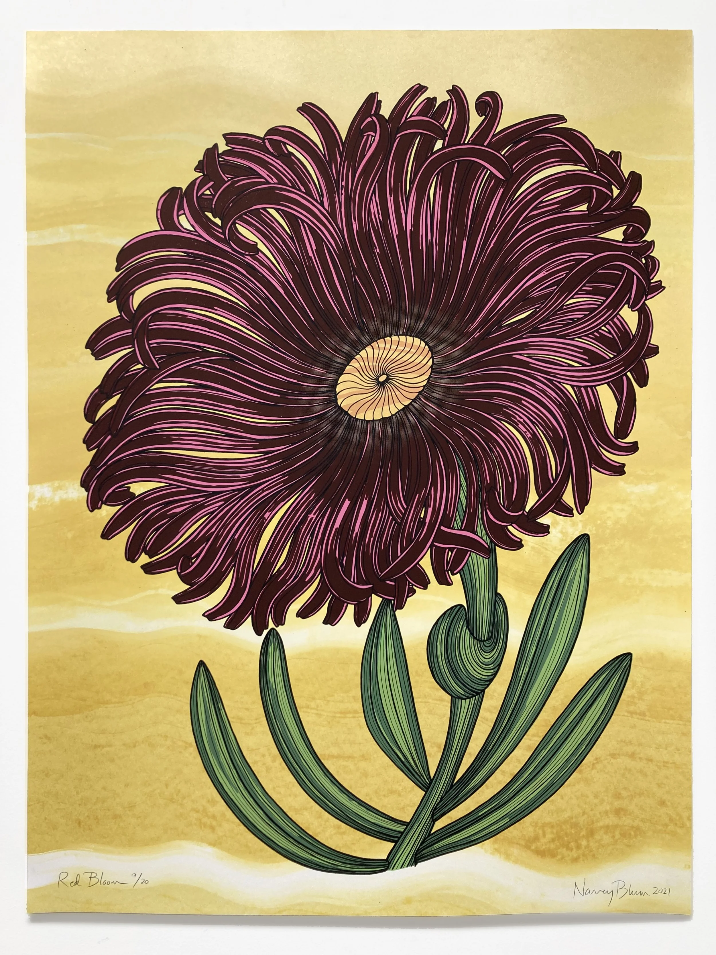 Red Bloom, Silkscreen with hand colored ink and gouache, 40 x 32 inches