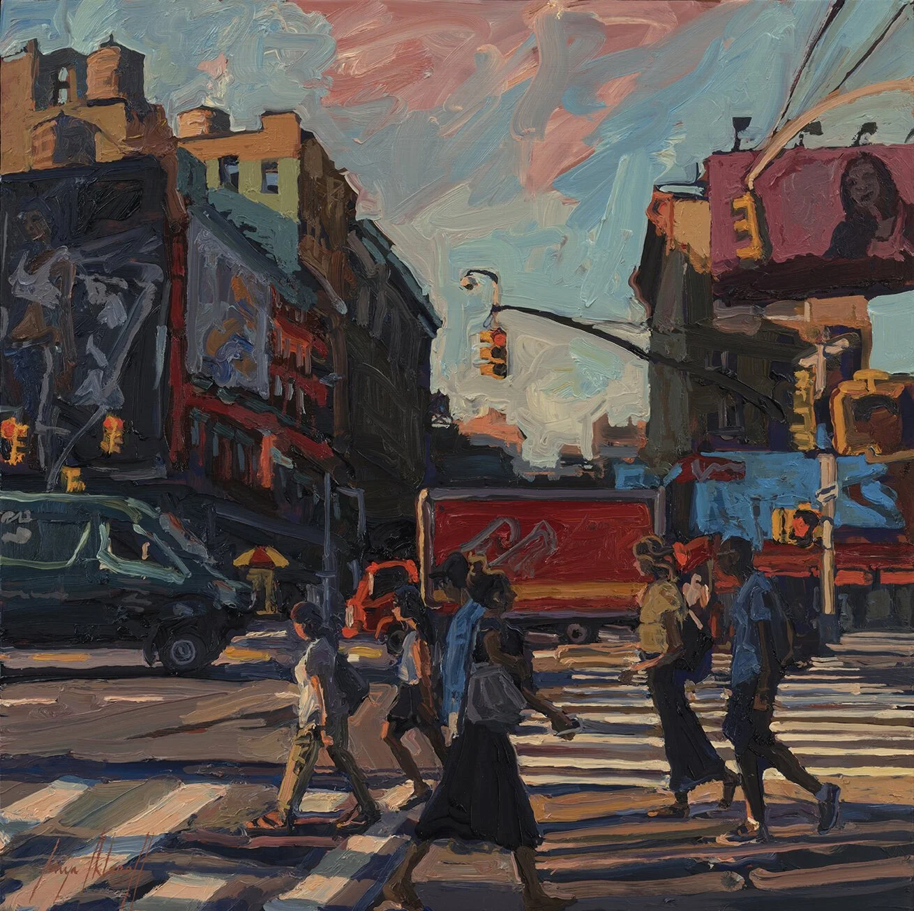 Houston Pedestrians, 2017, Oil on panel, 24 x 24 inches