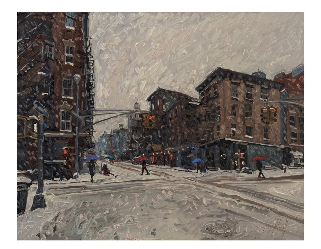 West Village Snowfall, 2018, Oil on panel, 24 x 30 inches