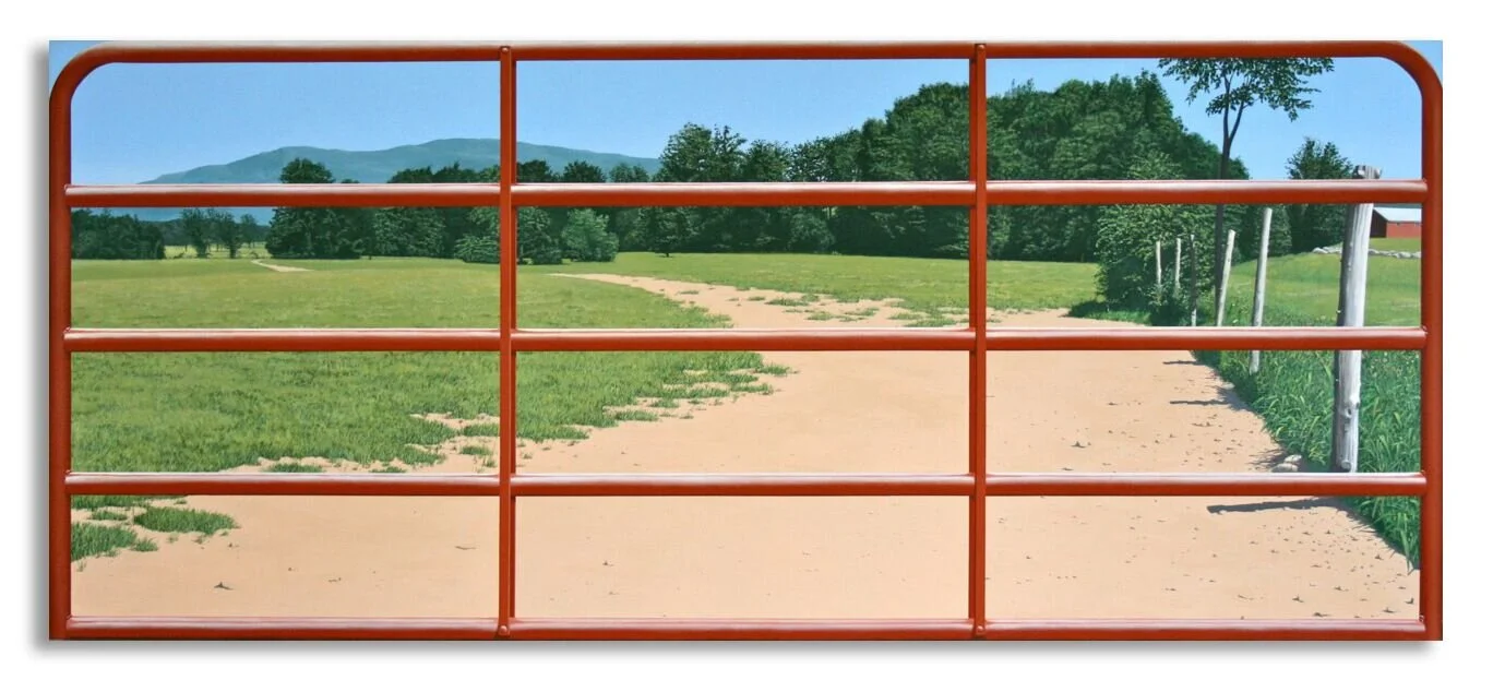 The Red Gate, Acrylic on canvas, 52 x 120 inches